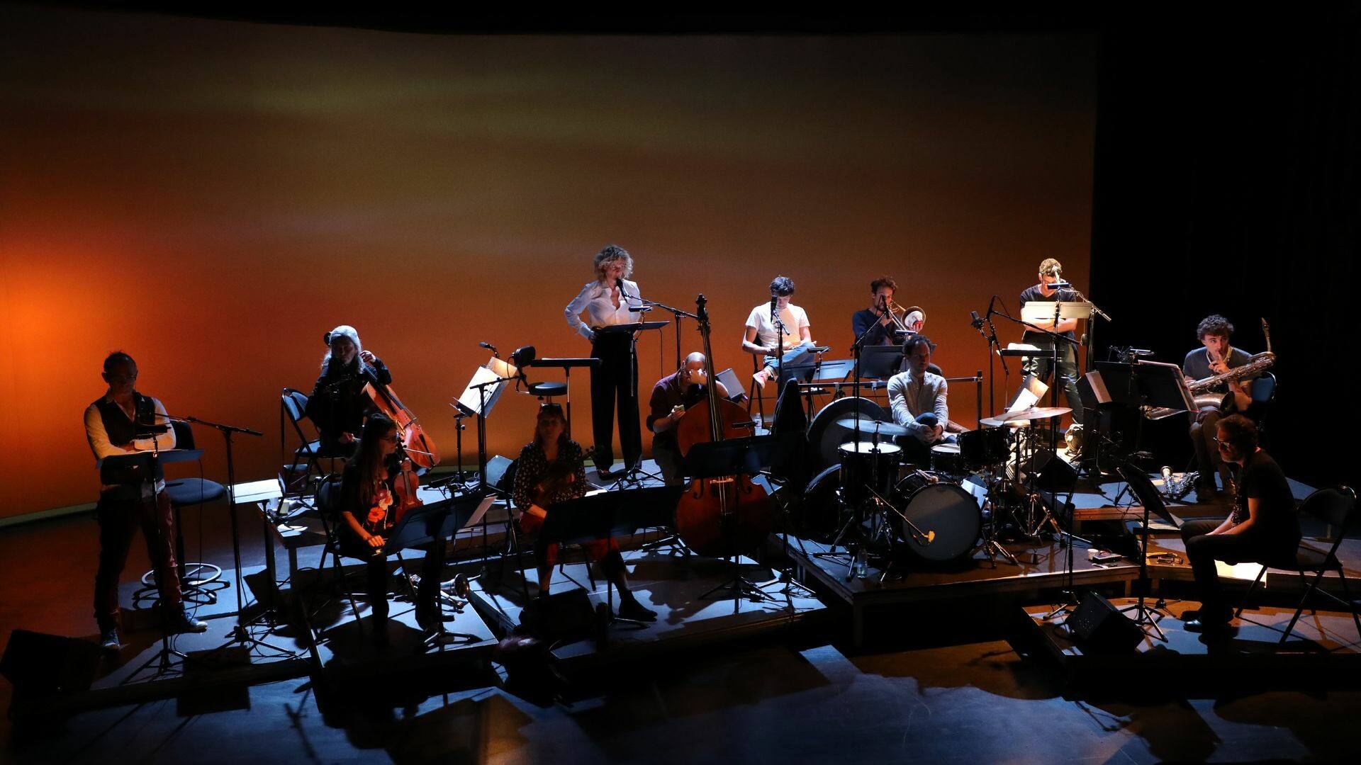 Laëtitia Pitz et Xavier Charles s’emparent du roman de science-fiction dystopique Les Furtifs d’Alain Damasio. Pour eux, c’est avant tout un roman qui parle de liberté, de ce qu’on s’autorise et de ce qu’on ne s’autorise pas. À partir de cette matière, ils créent un oratorio pour trois récitants et neuf musiciens : un quatuor à cordes, un batteur, un saxophoniste, un trompettiste, un tromboniste et un clarinettiste. Ils retranscrivent ainsi sur scène cette chronique futuriste pour donner à entendre une partition qui mêle voix parlées et ensemble instrumental. Les Furtifs est un déferlement sonore où la voix est musique et où la musique est voix, une ode à la résistance pour fracasser les liens de notre « servitude volontaire » – comme l’écrivait Étienne de La Boétie. Cette écriture scénique se développe du répertoire théâtral aux expériences de théâtre musical. Elle questionne la physicalité du son et de la voix, et met l’écoute au centre du processus. Dans un monde saturé d’images, saturé d’aplats numériques, Laëtitia Pitz ouvre un champ inouï, celui du sonore, un champ qui permet de renouer avec l’intimité d’une manière profonde.