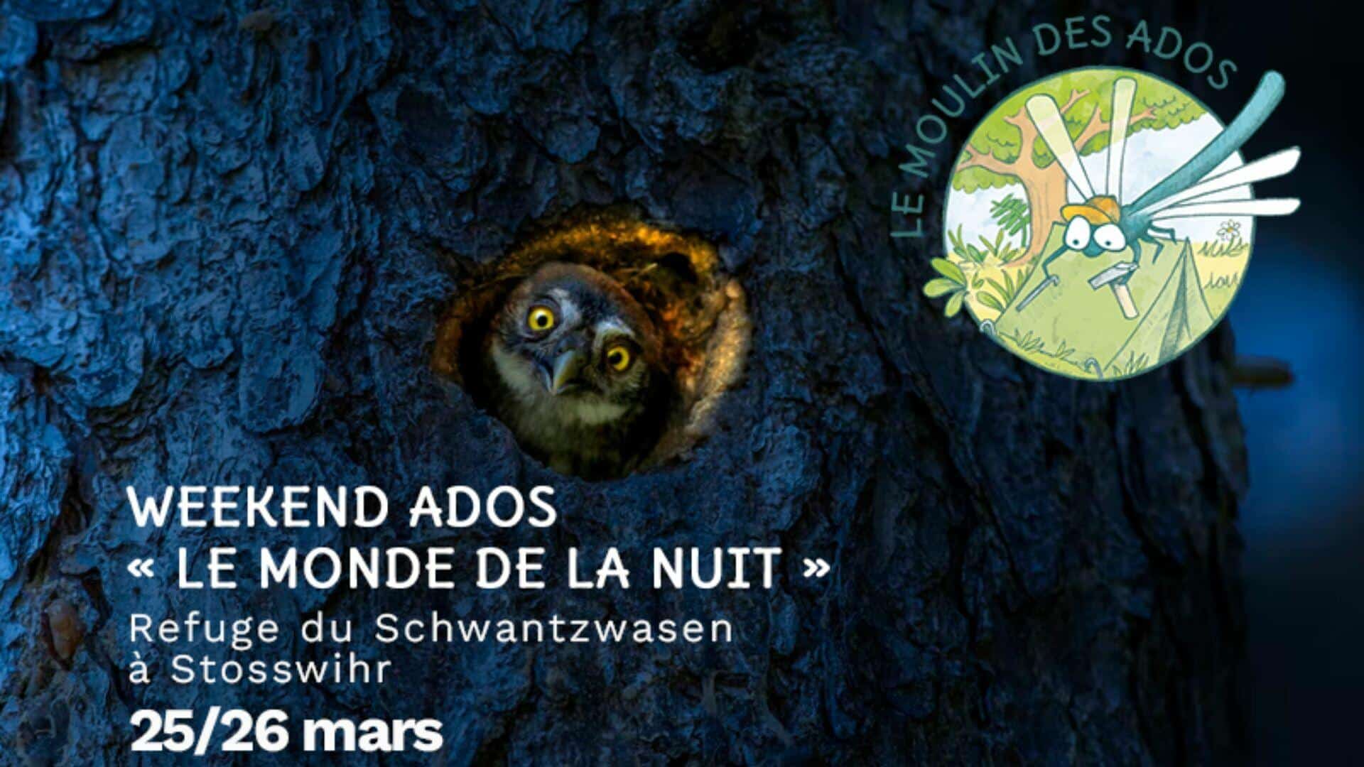 Le Moulin Nature de Lutterbach organise un weekend ados « Le monde de la nuit » du samedi 25 au dimanche 26 mars au chalet « Le Schantzwasen » à Le Tanet dans la vallée de Munster.
